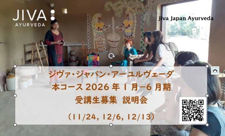 ジヴァ・ジャパン・アーユルヴェーダはアーユルヴェーダを総合的に学ぶスクールです。 ジヴァ・ジャパン・アーユルヴェーダスクールは2026年1月期本コース受講生を募集しています。募集するコースは下記のとお […]