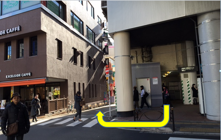 改札を出て右の券売機わきの小路(エクセシオールカフェ)の間をすすみます。