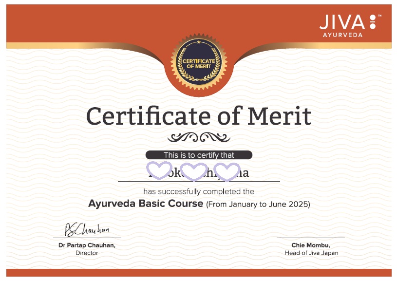 講座を終了された方には、ドクター・パルタップ・チョハンが認定する修了書が発行されます。